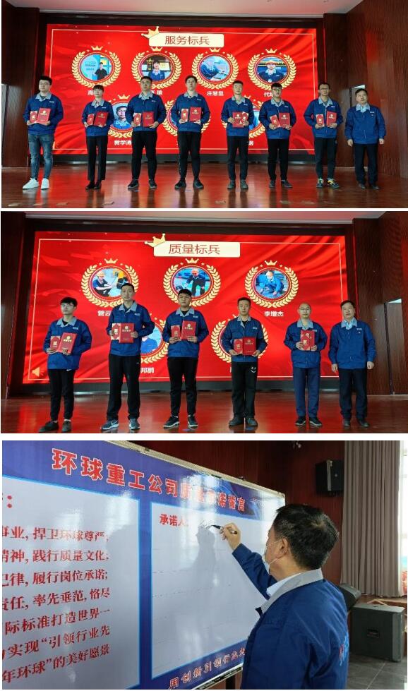 大會宣讀了《環(huán)球重工公司關于表彰“服務標兵”、“質(zhì)量標兵”的決定》。環(huán)球重工總經(jīng)理劉增喜為獲得表彰的人員頒發(fā)榮譽證書和 獎金紅包。