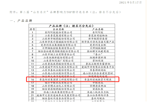 近日,“品牌強省 創(chuàng)領(lǐng)未來——第二屆‘山東名片’品牌影響力TOP榜”評選結(jié)果揭曉,青島環(huán)球重工科技有限公司榜上有名,地鐵管片模具榮登“產(chǎn)品品牌”TOP榜。
