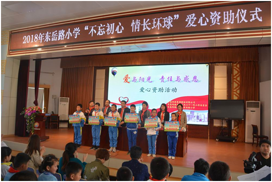 4月28日是青島環(huán)球集團第五十二個建廠紀(jì)念日,為了迎接第五十二個建廠紀(jì)念日,傳遞環(huán)球人的感恩之心,關(guān)愛之心,4月27日上午環(huán)球集團聯(lián)系關(guān)心下一代工作委員會、黃島區(qū)慈善總會,共同走進黃島區(qū)東岳路小學(xué)(原瑯琊臺小學(xué)),開展了“不忘初心,情長環(huán)球”愛心捐助活動。